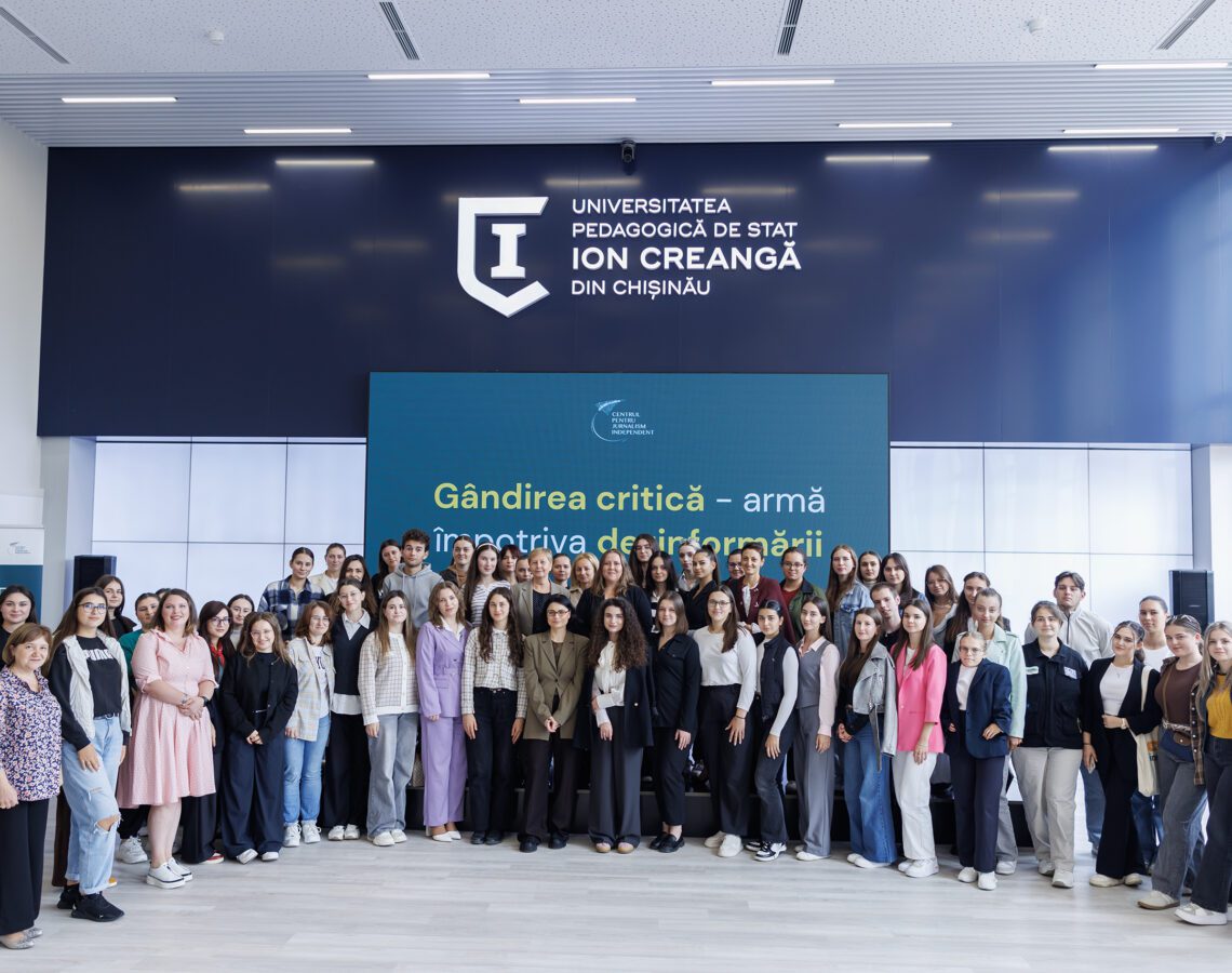 Ce este educația media și de ce este important să gândim critic într-o societate în care volumul de informații este imens? La aceste și alte întrebări au aflat răspuns peste 80 de studenți și studente de la Facultatea de Filologie și Istorie și Facultatea de Pedagogie și Psihopedagogie Specială de la Universitatea Pedagogică de Stat „Ion Creangă” din Chișinău. Aceștia au participat la un atelier în domeniul alfabetizării informaționale și educației media, organizat pe 19 septembrie 2025 de Centrul pentru Jurnalism Independent (CJI), în colaborare cu UPS „Ion Creangă”.