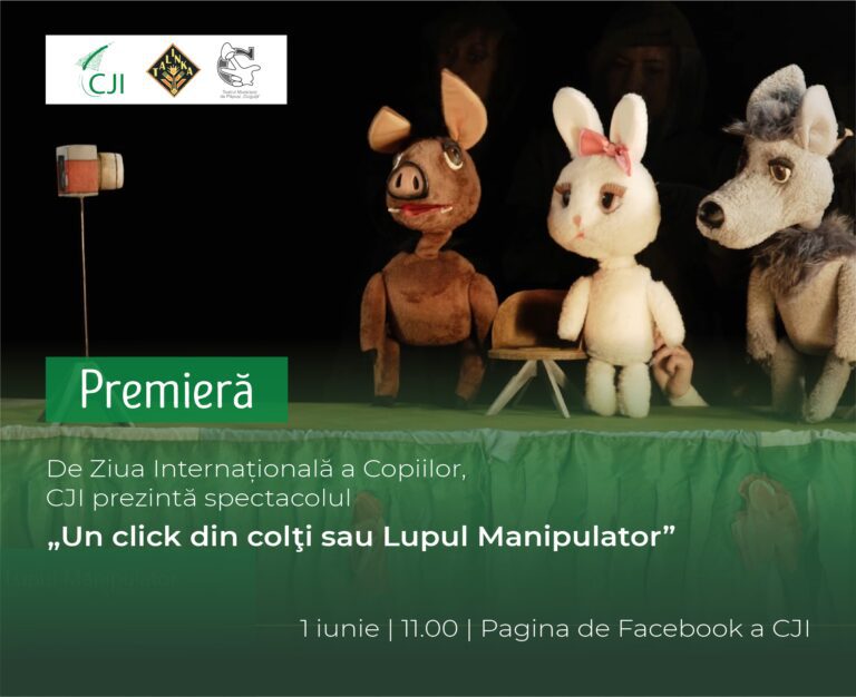 PREMIERĂ: De Ziua Internațională a Copiilor, CJI lansează spectacolul „Un click din colţi sau Lupul Manipulator”