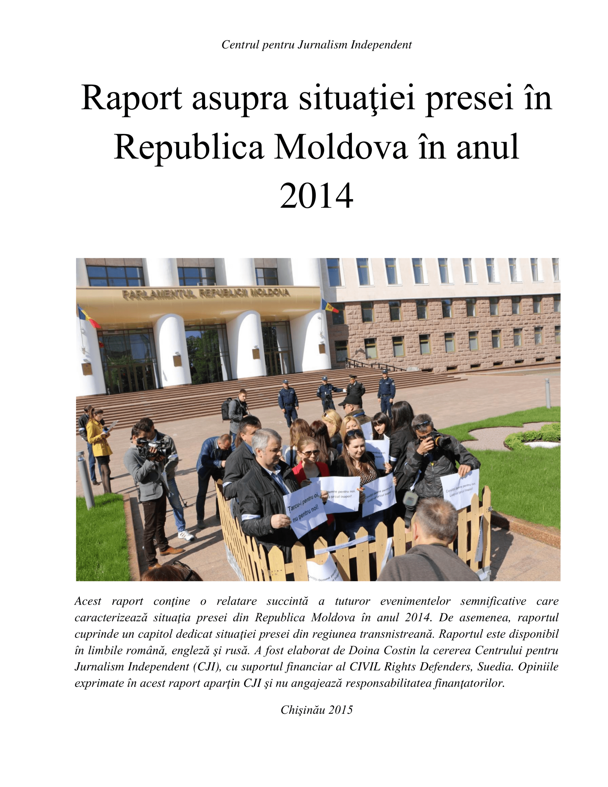 Raport asupra situaţiei presei în Republica Moldova în anul 2014