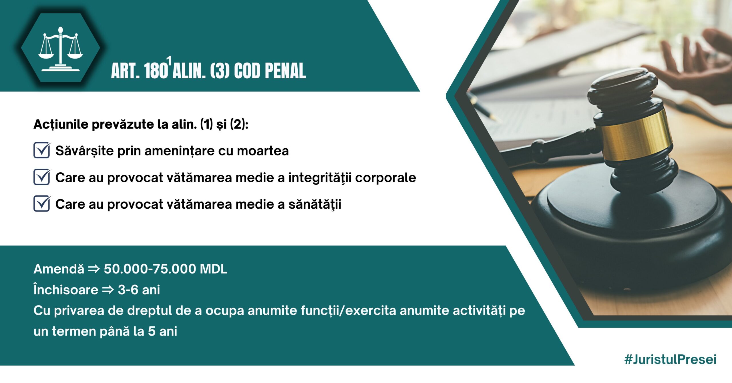 În cele mai grave situații, atunci când fapta este comisă prin amenințare cu moartea sau când provoacă vătămare medie a integrității corporale ori a sănătății, pedeapsa devine și mai severă. Aceasta poate consta în închisoare de la trei la șase ani sau amendă între 50.000 și 75.000 de lei ori interdicția de a ocupa anumite funcții pe o perioadă de până la cinci ani.