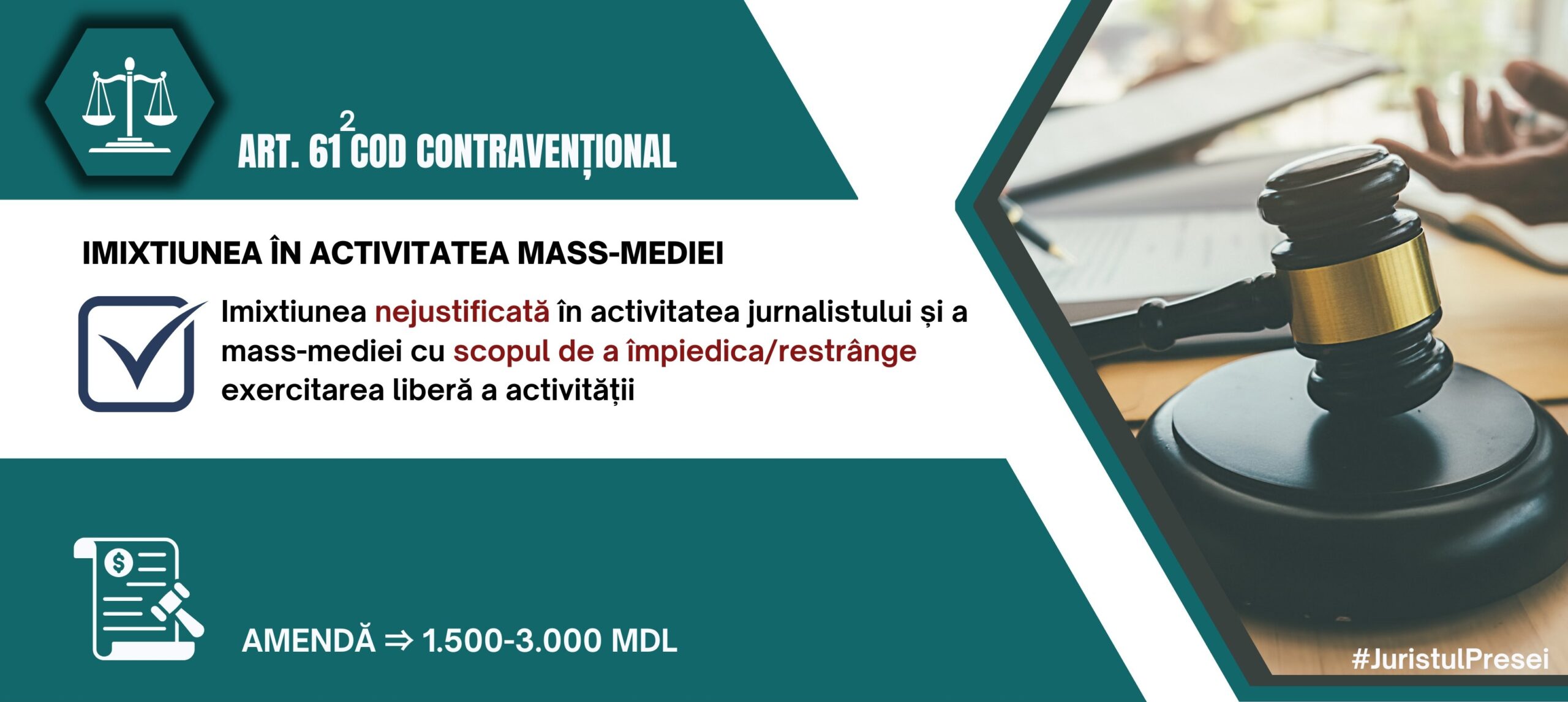 Totodată, imixtiunea nejustificată în activitatea jurnalistului sau a redacției, atunci când fapta nu constituie infracțiune, va fi sancționată cu amendă între 1.500 și 3.000 de lei. Această normă acoperă situațiile de presiune sau blocaj administrativ care nu ating pragul penal, dar afectează libertatea exercitării profesiei.