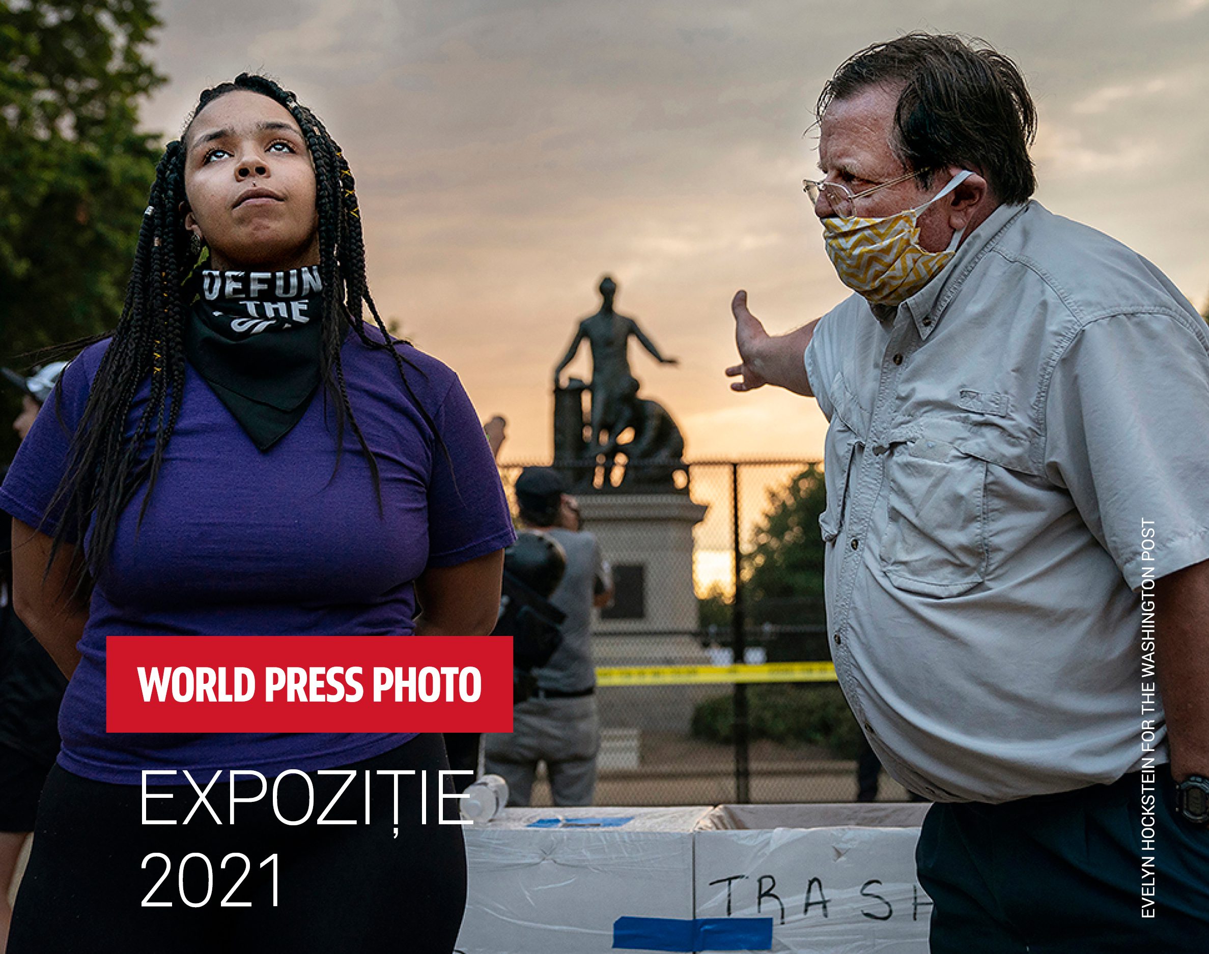 Un bărbat și o femeie se contrazic în privința desființării Memorialului Emancipării din Lincoln Park, Washington DC, SUA, pe 25 iunie. Memorialul Emancipării îl înfățișează pe președintele Abraham Lincoln ținând într-o mână Proclamația de Emancipare și cu cealaltă întinsă deasupra capului unui bărbat de culoare, care îngenunchează la picioarele lui. Criticii statuii spun că ea este paternalistă, umilitoare în felul în care îi prezintă pe americanii de culoare și că nu face dreptate rolului pe care l-au jucat persoanele de culoare în propria eliberare. Activiștii Black Lives Matter (BLM) au susținut în mare parte inițiativa de a îndepărta monumentele care sunt văzute ca mementouri ale unei istorii opresive. Cei care se opun desființării statuii declară că ea este o imagine pozitivă a unei populații eliberate din sclavie și că a îndepărta asemenea monumente înseamnă a șterge istoria. Înaintea manifestațiilor, oficialii au ridicat bariere în jurul Memorialului Emancipării. Locuitorii din zonă au lipit bilete pe gard exprimându-și punctele de vedere, iar pe 25 iunie, în jur de 100 de persoane s-au adunat în preajma monumentului pentru a-i dezbate semnificația.